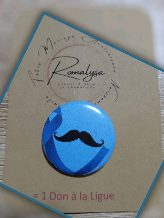 Badge Ruban bleu Moustaches / Movember / Novembre bleu