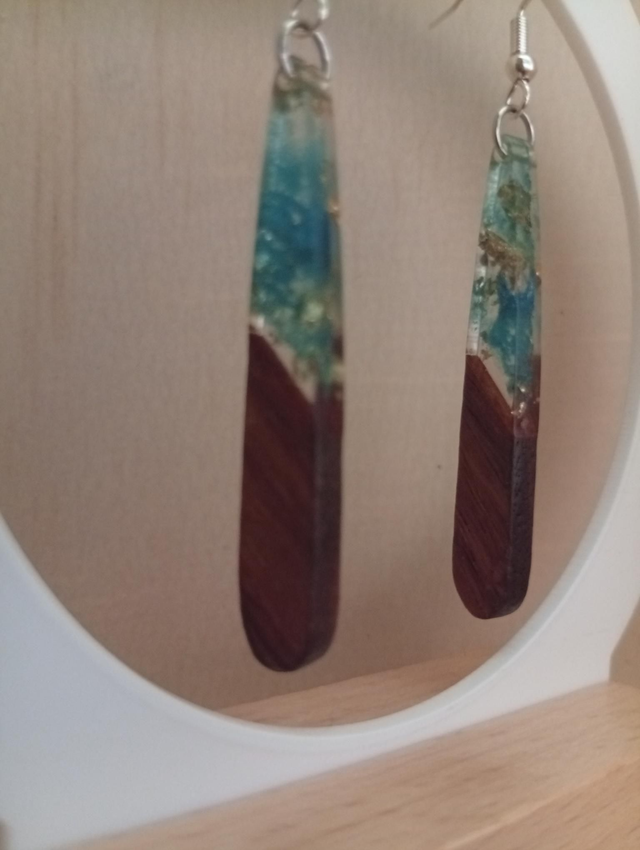 Paire de boucles d'oreilles en bois, époxy coloré et feuille d'or ... plusieurs couleurs au choix